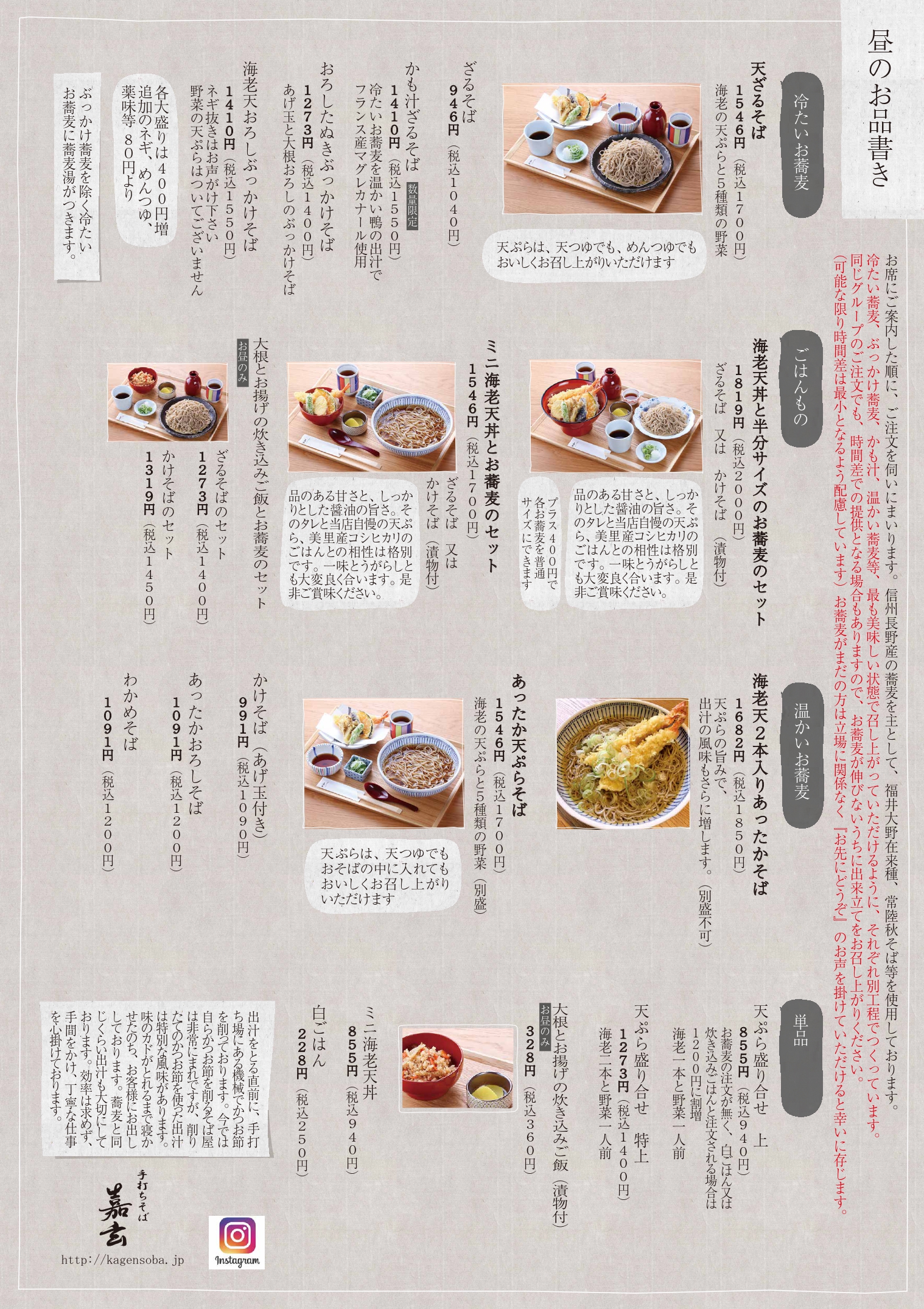 お昼もお飲みものご注文いただけます。夜のお品書きを御覧下さい。