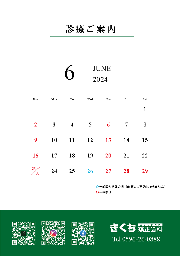 こんにちは😁2024年6月の診療案内です🎈ご予約の参…
