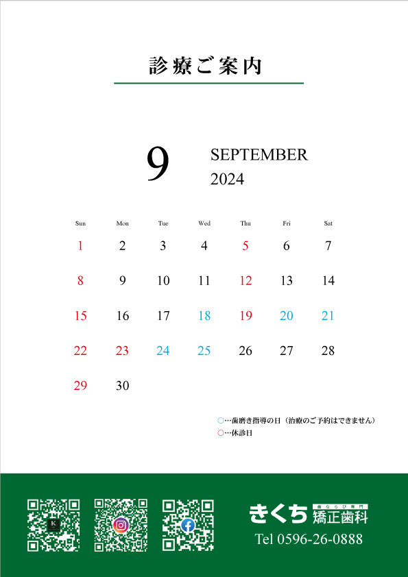 こんにちは🤗2024年9月の診療案内です💡ご予約の参…