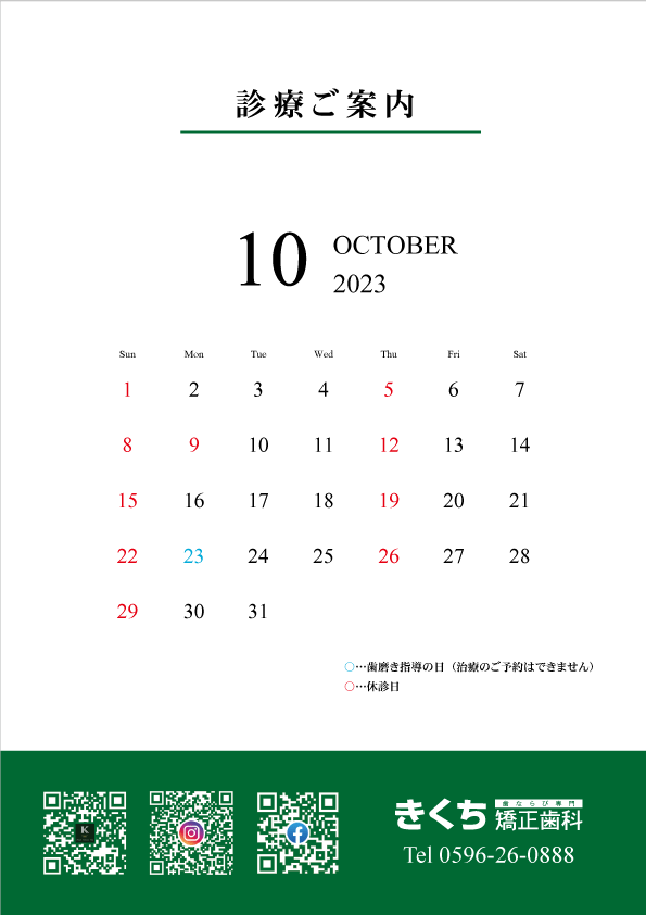 こんにちは😊2023年10月の診療案内です🦷ご予約の…