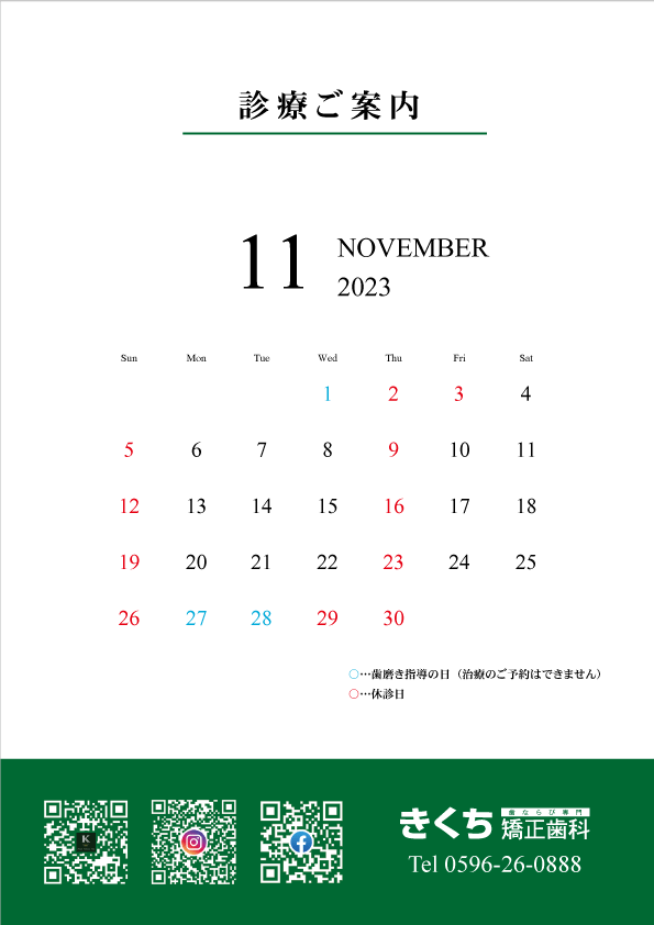 こんにちは😁2023年11月の診療案内です❕❕ご予約…