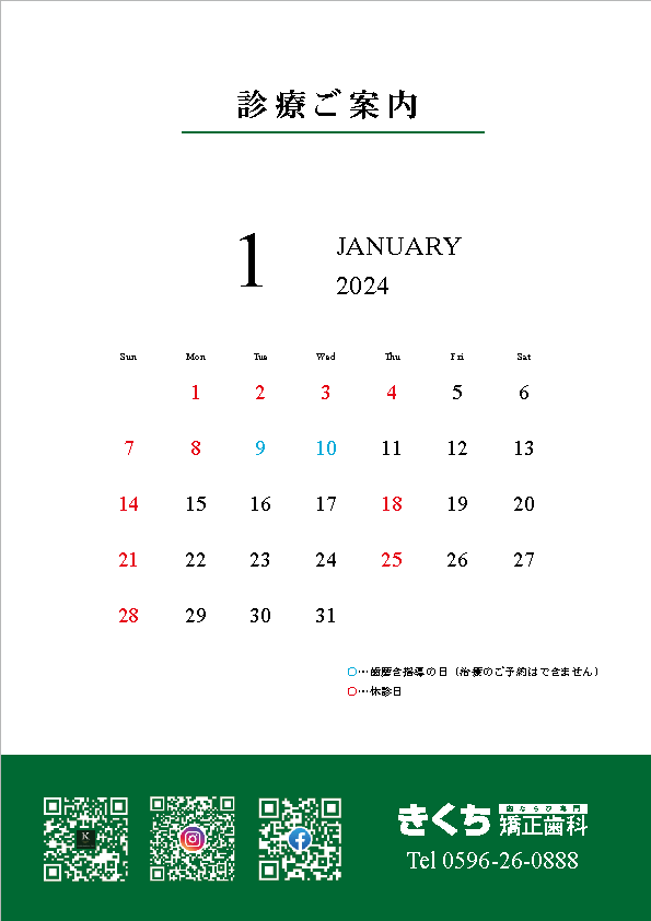 こんにちは😁2024年1月の診療案内です❗ご予約の参…