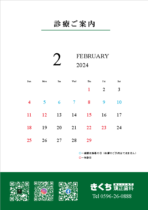 こんにちは😁2024年2月の診療案内です👀ご予約の参…