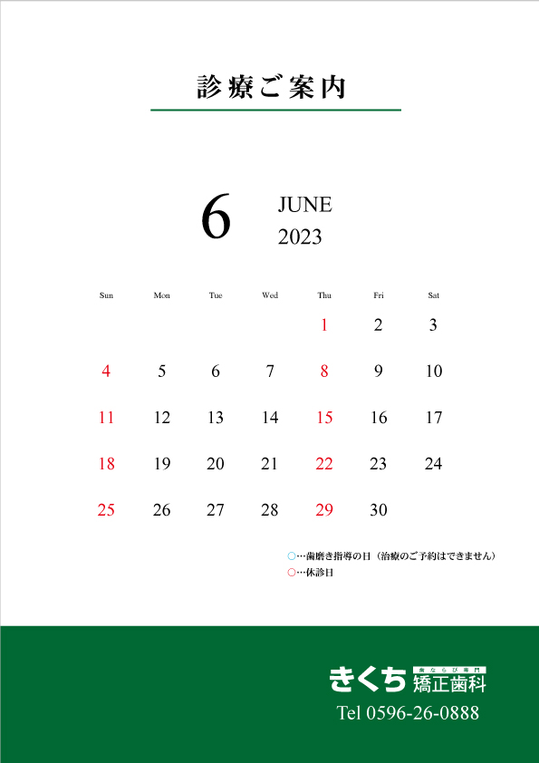 こんにちは😁2023年6月の診療案内です🎵ご予約の参…