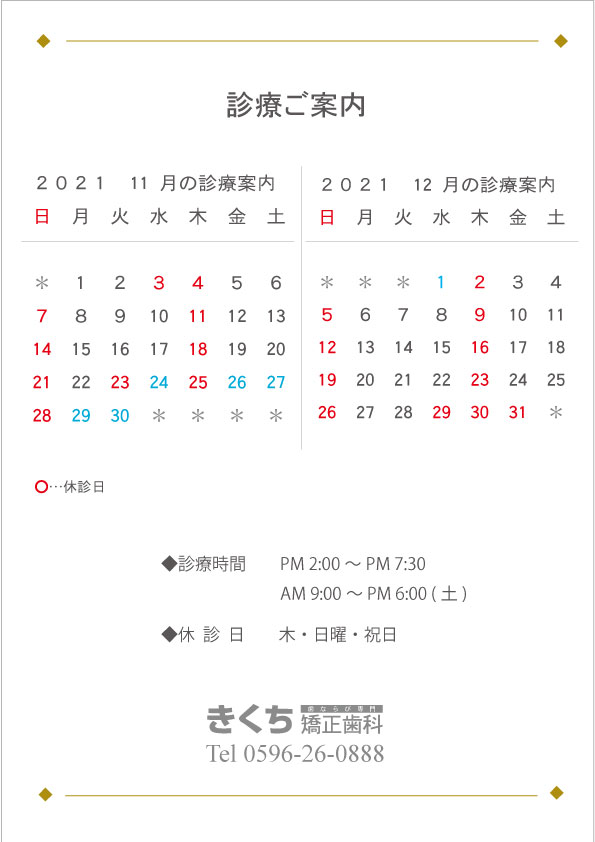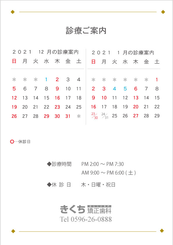こんにちは?2021.12月、1月の診療案内です。ご…